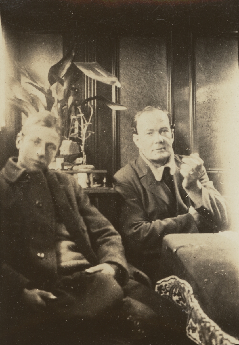 Fotografi från expedition till Spetsbergen. Motiv av två män som sitter inomhus.