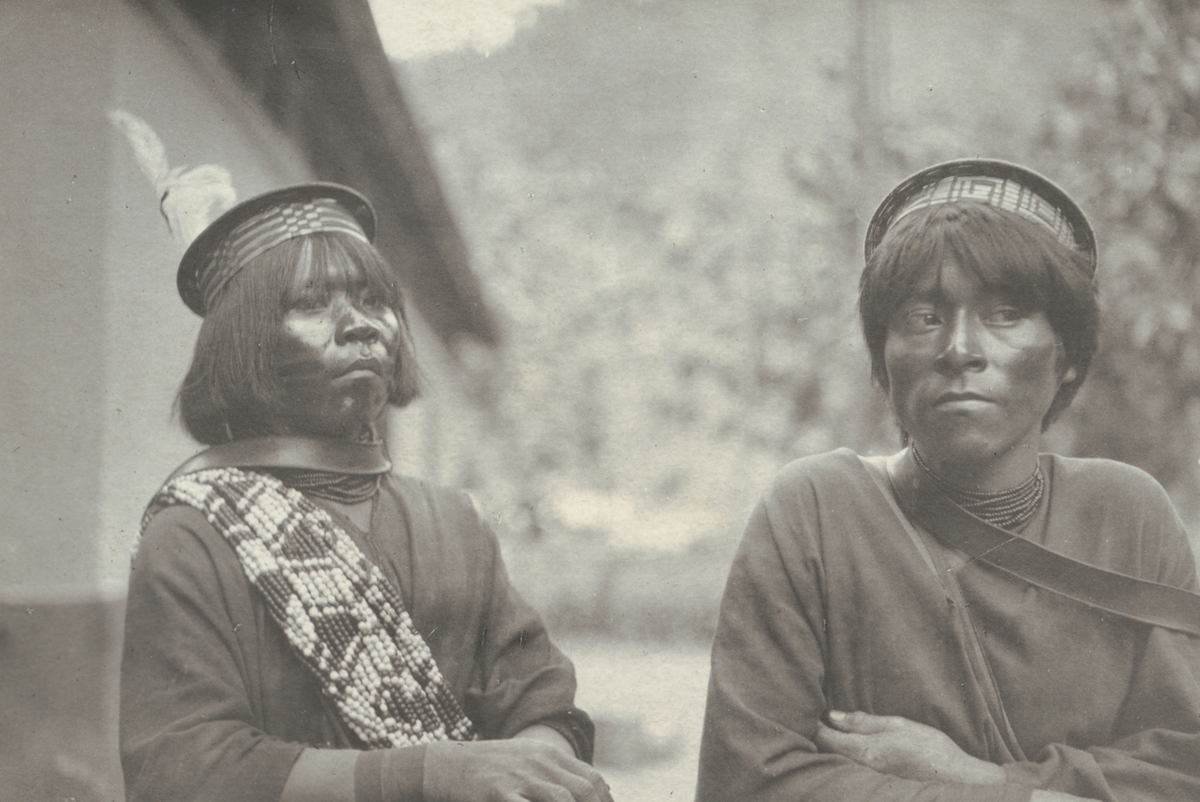 Fotografi från kuvert märkt med "Ernst Nordenskjöld". Motiv av två män i djungeln.