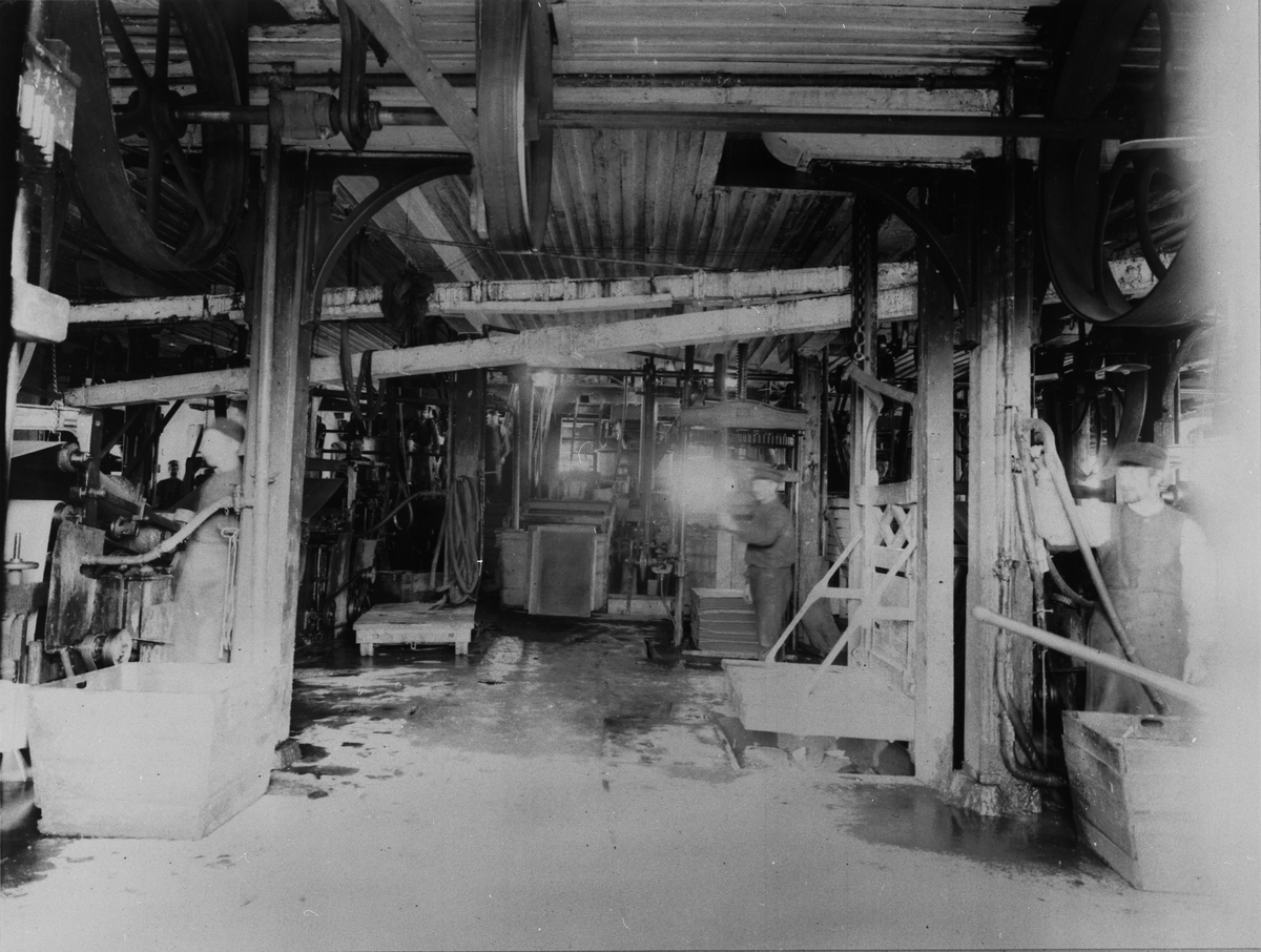 Pappmaskiner och pressar.Hiss för pressad papp till torkeriet.1890-talet.