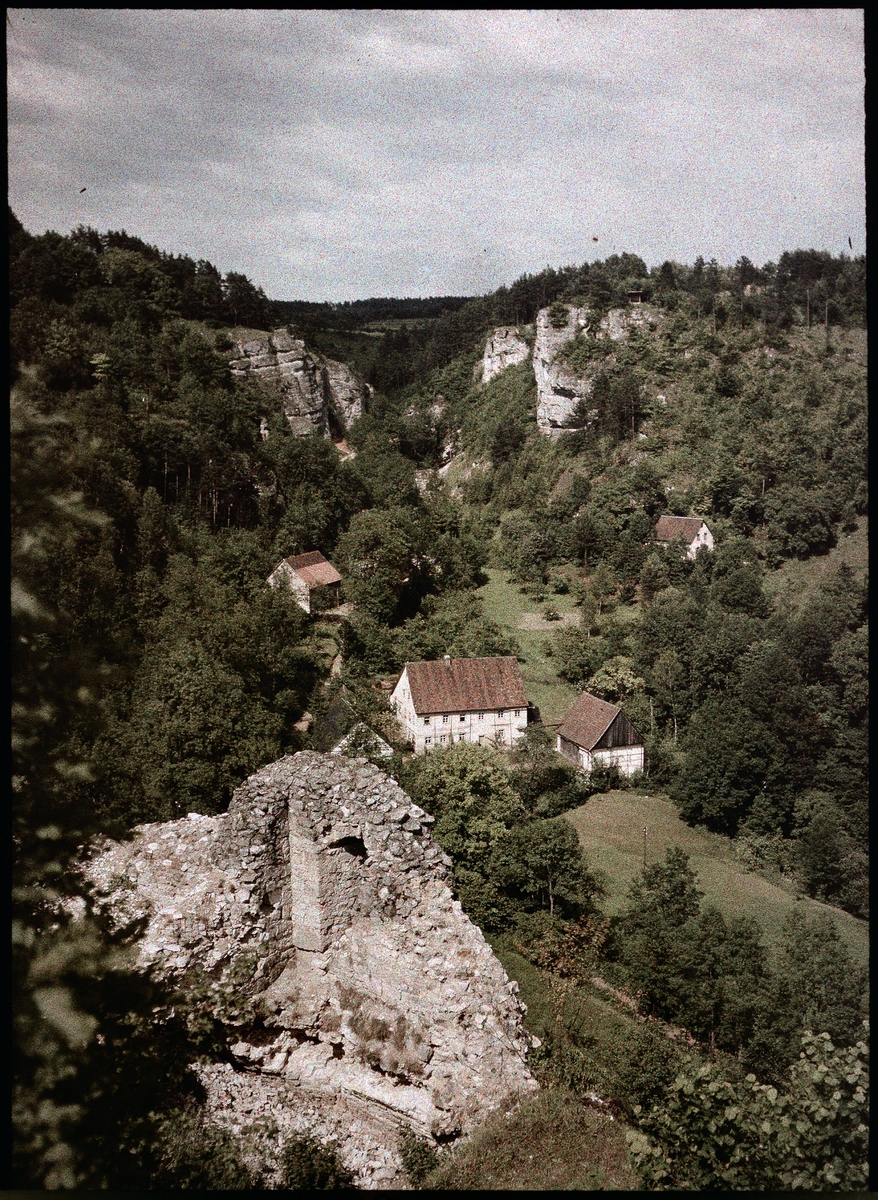 Agfa-autokrom. Byggnader. Partie vinsd? fränkischen Schweiz.