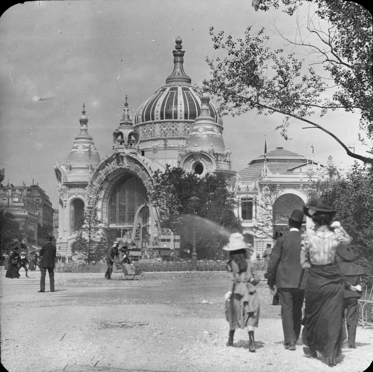 Skioptikonbild med motiv från världsutställningen i Paris, 1900. Palais des Mines.