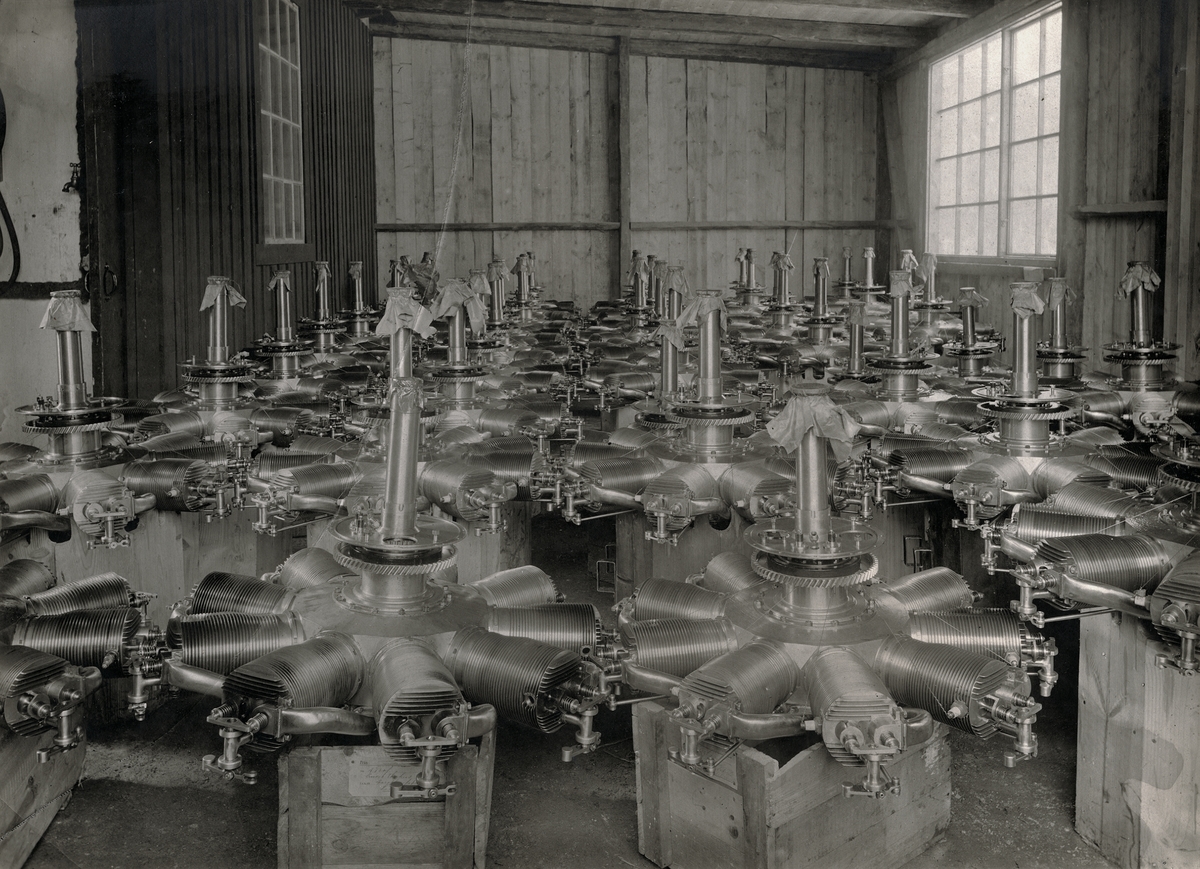 En veckas produktion av 90/110 hkr Thulin-motorer typ A, tillverdakde vid AB Thulinverken.