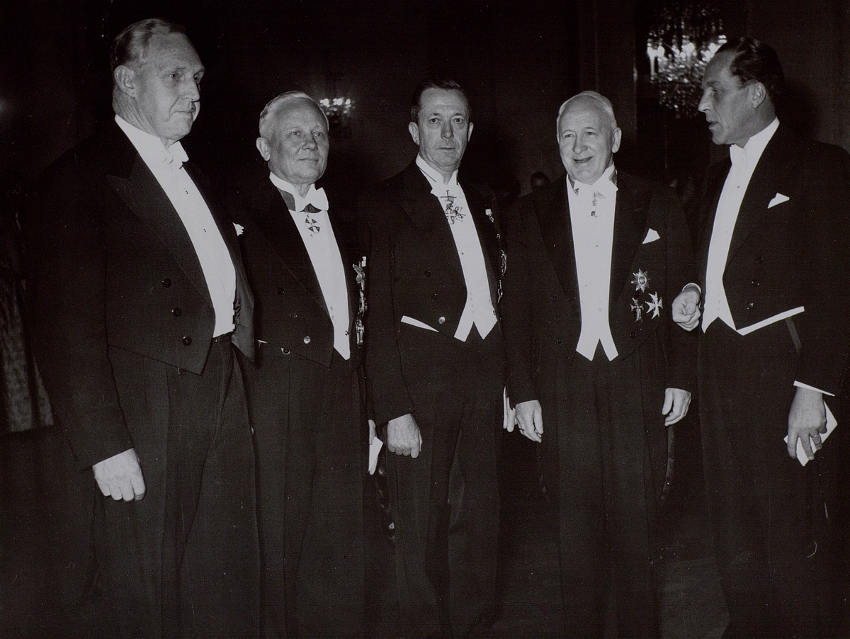 Televerket 100 år. 4 generaldirektörer Rynning-Tönnesen Norge, Aholm, Finland, Jensen, Danmark, Hliddal, Island och statsrådet Andersson .