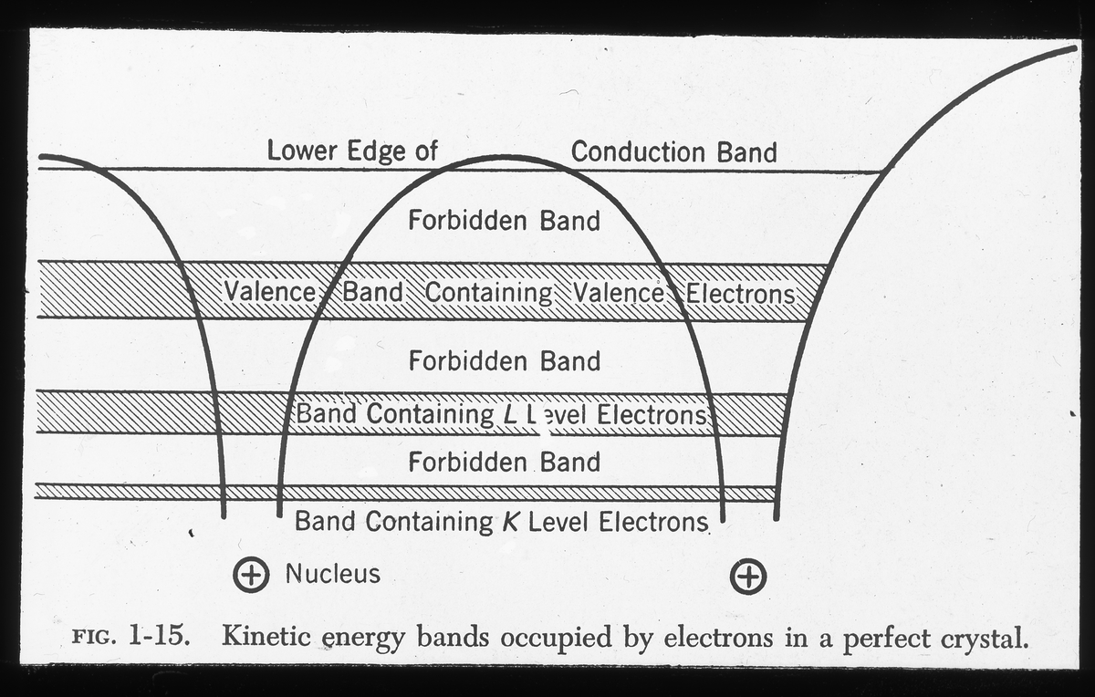 Kinetiska energiband upptas av elektroner i en perfekt kristall.