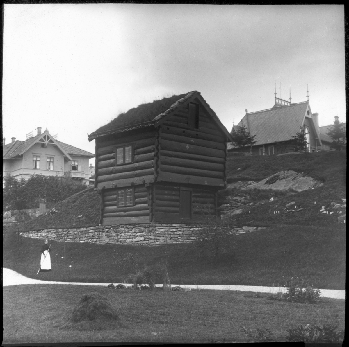 Skioptikonbild från institutionen för fotografi vid Kungliga Tekniska Högskolan. Motiv föreställande härbre.. Bilden är troligen tagen av John Hertzberg.