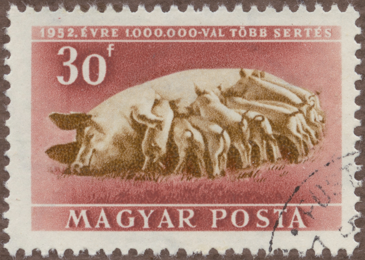 Frimärke från Ungern, 1951. Motiv av Gris med griskultingar. 1952 "1.000.000 "Husdjursserie"