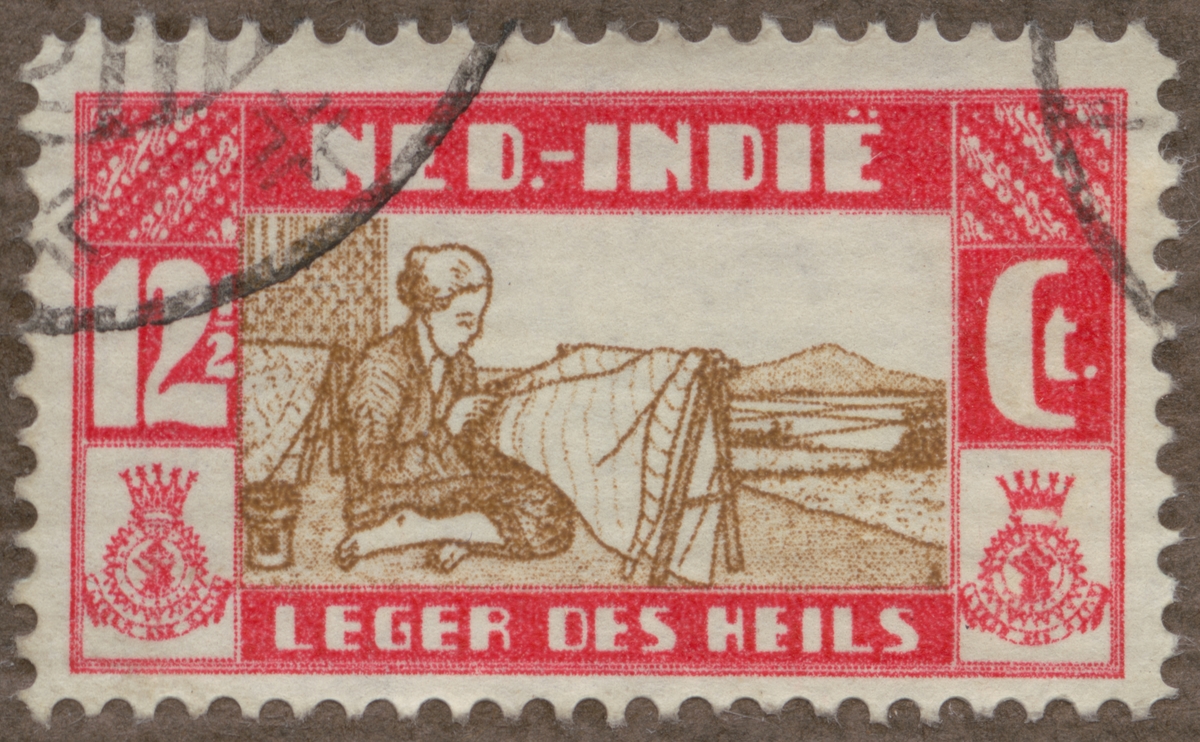 Frimärke från Nederländska Indien, 1932. Motiv av dekoration av vävnader: batik. "Till förmån för frälsningsarmén".