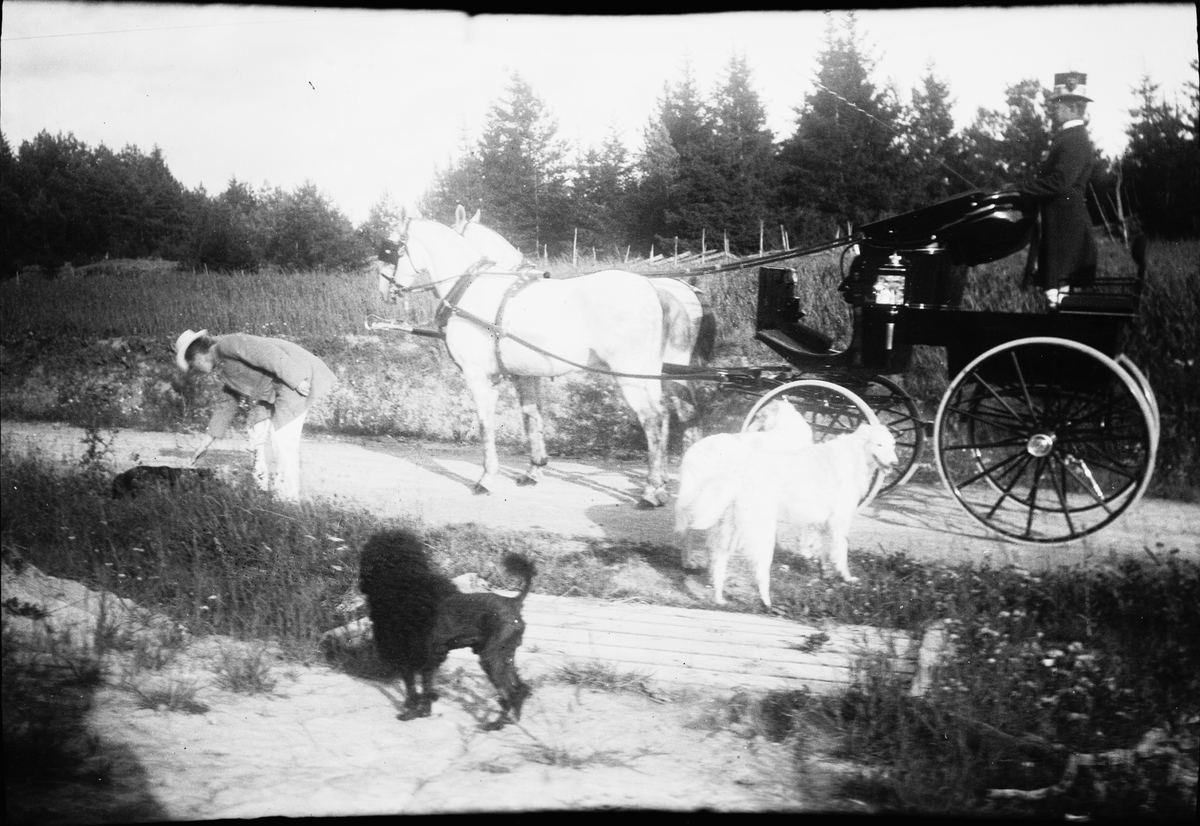 Drottning Victorias bilder. Ett ekipage, häst och vagn med körkarl. Troligen Öland.