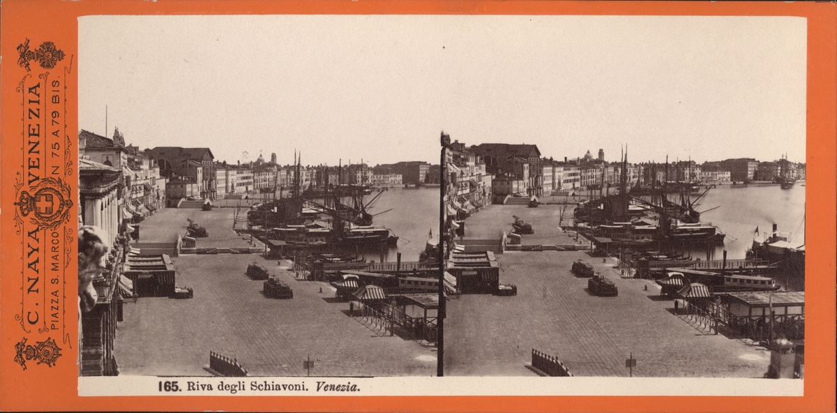Stereobild av strandpromenaden Riva degli Schiavoni, Venedig.