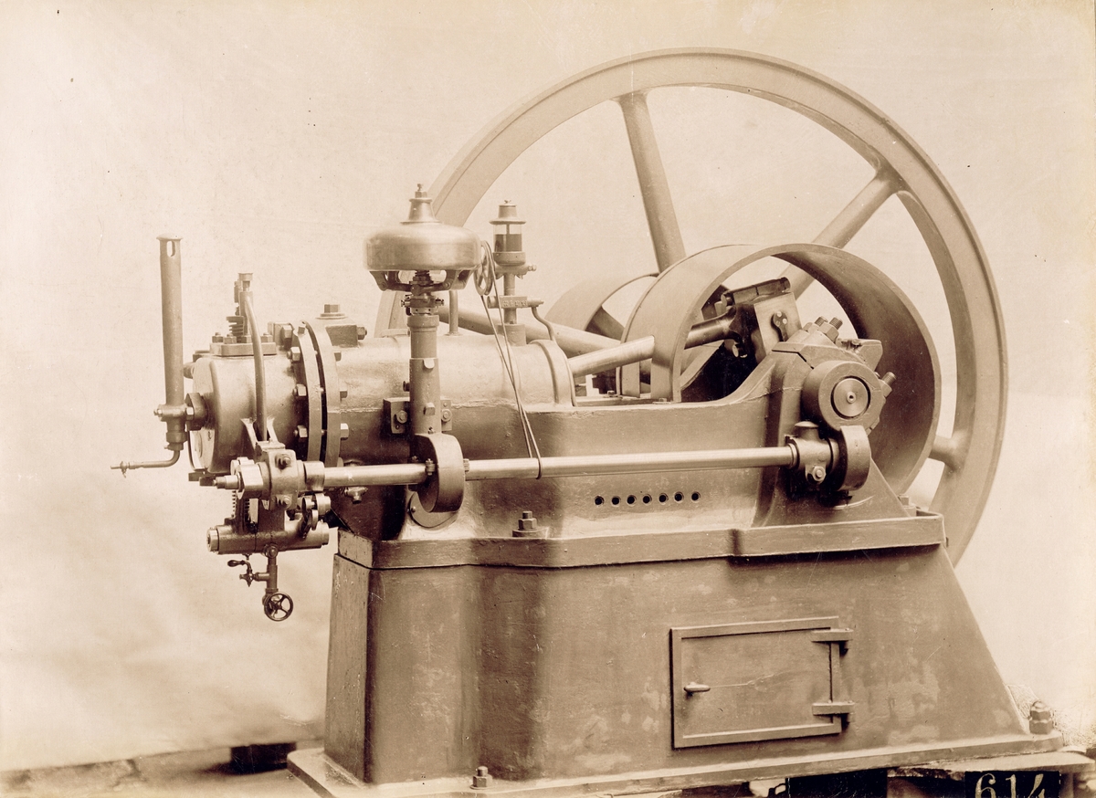 Fyrtakts fotogenmotor med glödtändning och hastighetsreglering.