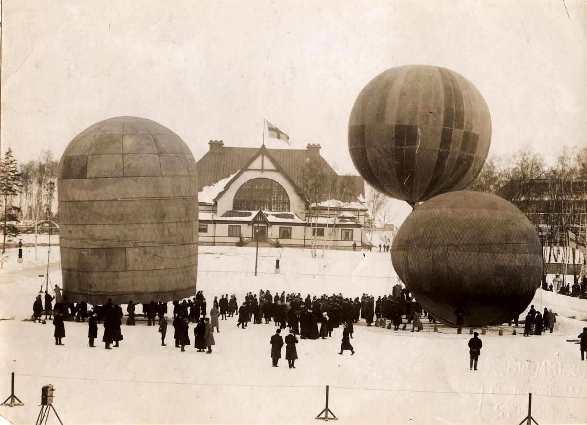 Luftballongerna Andrée, Svenske och Argonat, vid Nordiska spelen i Stockholm, Idrottsparken 1909.