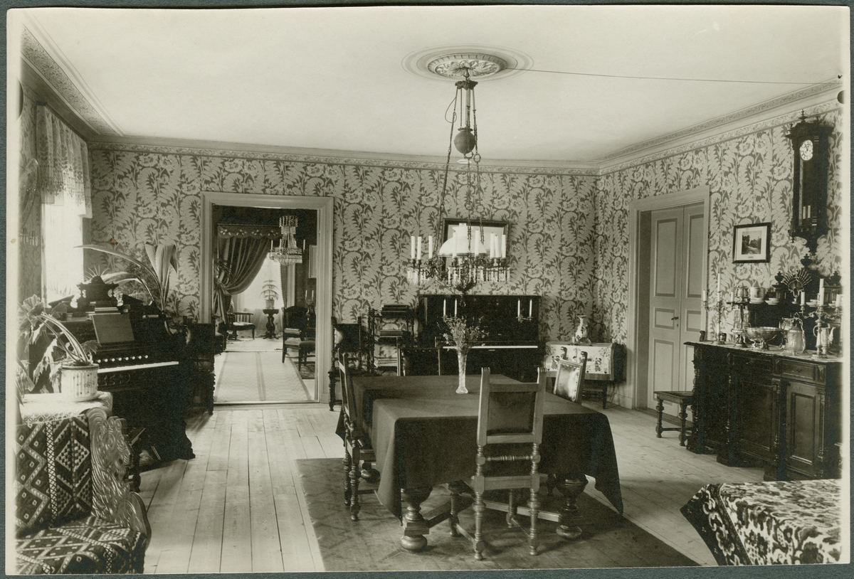 Interiör, troligen av Thorvald Gehrmans hem i Hedemora. Fotografi med kemiska retusch.