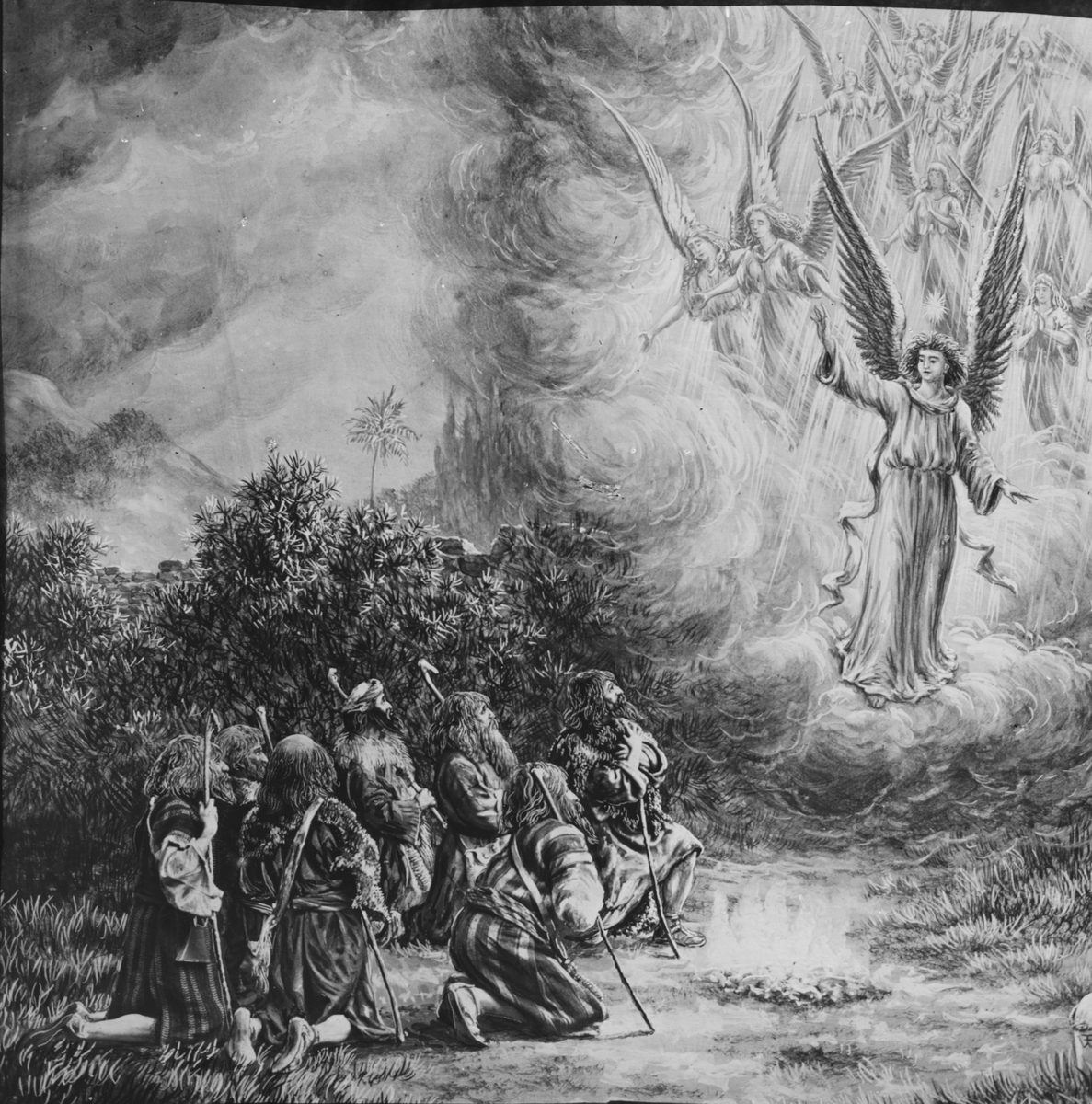 Skioptikonbild. Fotografi av konstverk. Religiöst motiv.
