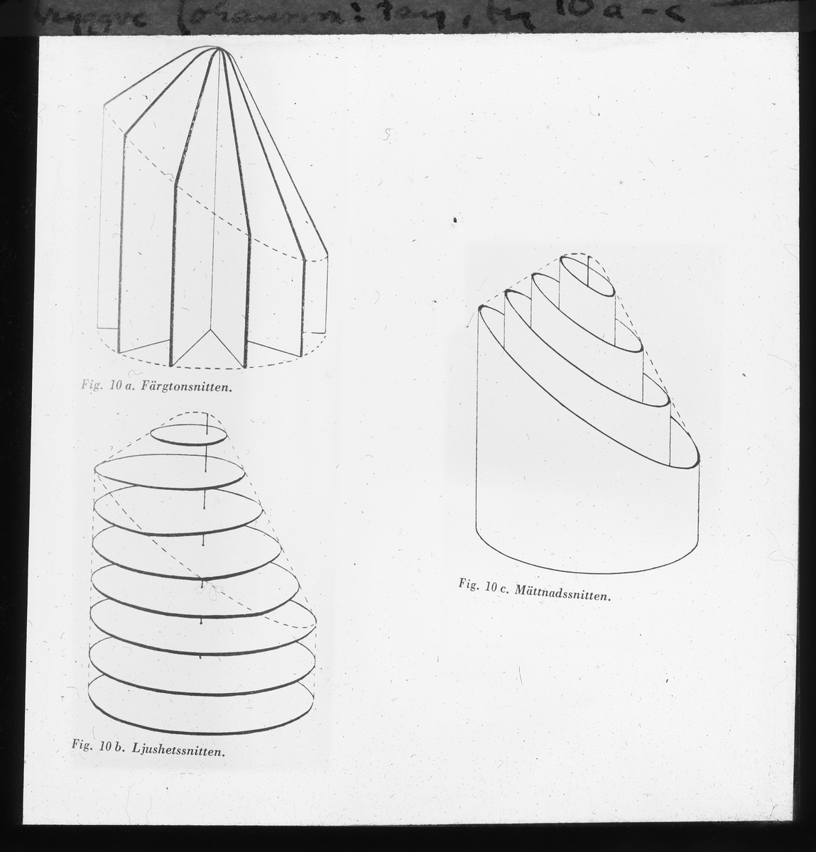 Skioptikonbild från Institutionen för fotografi vid Kungliga Tekniska Högskolan. Använd av professor Helmer Bäckström som föreläsningsmaterial. Bäckström var Sveriges första professor i fotografi vid Kungliga Tekniska Högskolan i Stockholm 1948-1958.