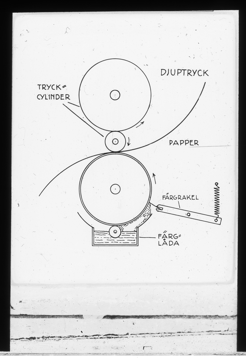 Skioptikonbild från Institutionen för fotografi vid Kungliga Tekniska Högskolan. Använd av professor Helmer Bäckström som föreläsningsmaterial. Bäckström var Sveriges första professor i fotografi vid Kungliga Tekniska Högskolan i Stockholm 1948-1958.