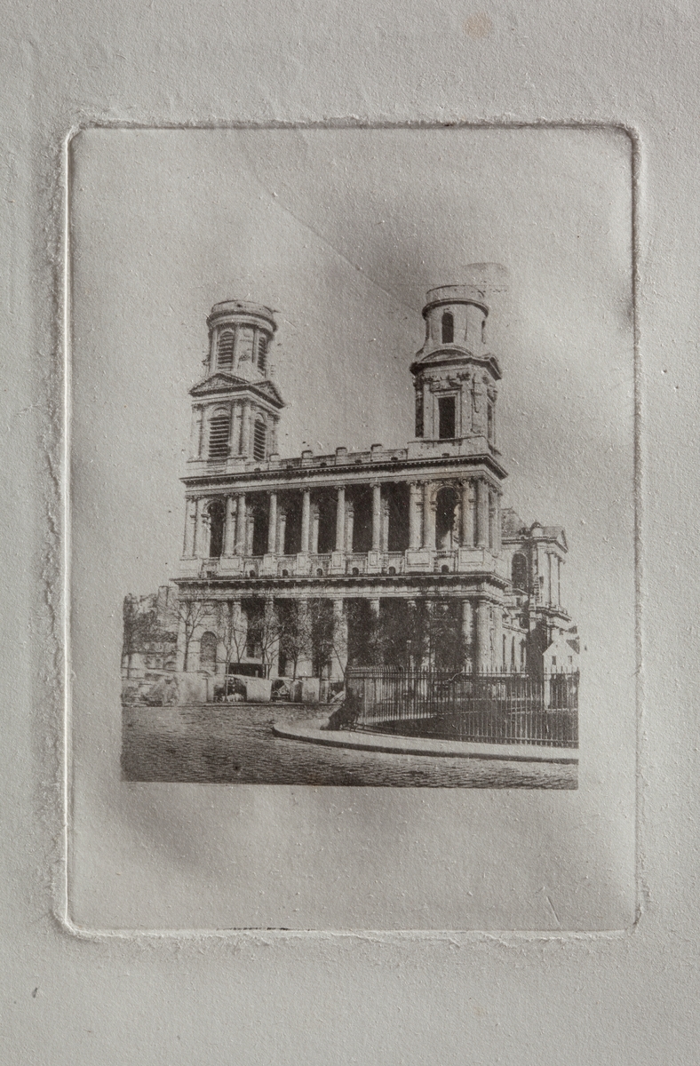 Fotogravyr. Gjort efter ett collodiumnegativ på glas. Belyst genom ett hartsraster.Okänd byggnad.