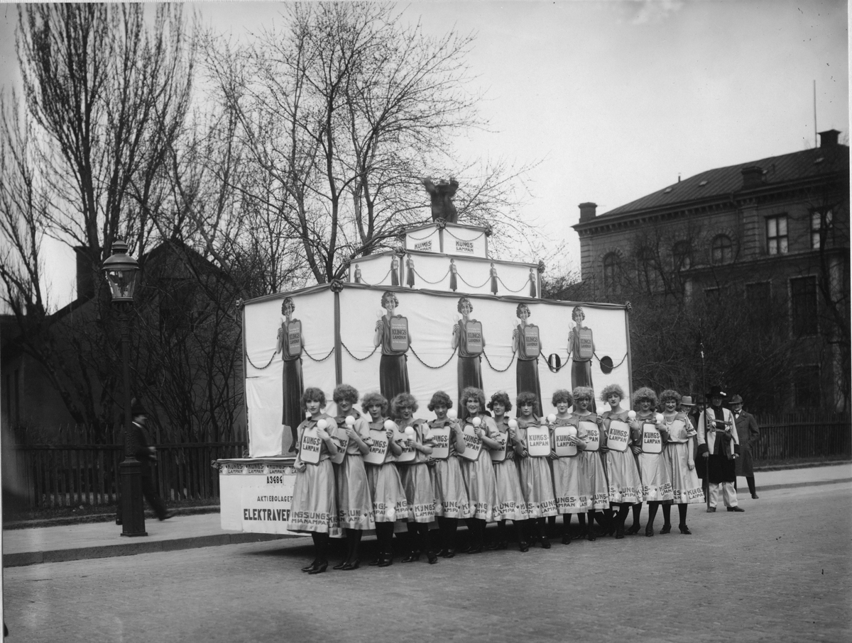 AB Stockholms Glödlampfabriks parad "Kungslampsparaden" i Stockholm 2 maj 1926.