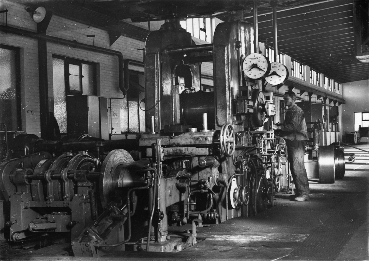 Munkfors Bruk i Värmland. Kallvalsverket, 1930. Reversibelt kvartoverk.