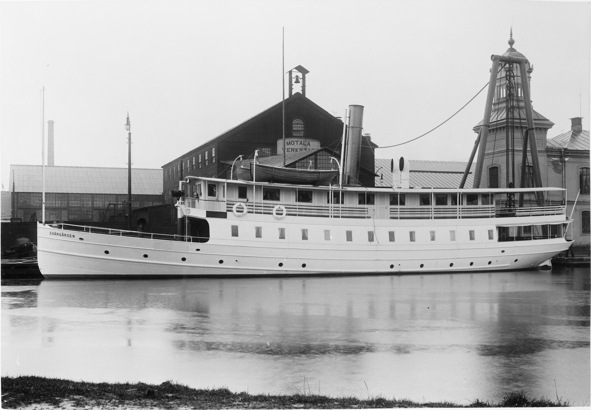 Skärgården. Passagerar - ångfartyg om 260 ind. hkr. Tillverkad vid Motala Mekaniska Verkstad, Östergötland 1907. Längd 32,8 meter, bredd 5,84 meter, djupgående med 280 passagerare och 12 tim kolförråd, 2,08 meter.