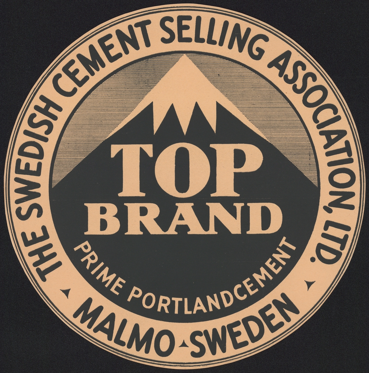 Fabriksmärke för cementpåsar. The Swedish Cement Selling Association Ldt. Prime Portland Cement.