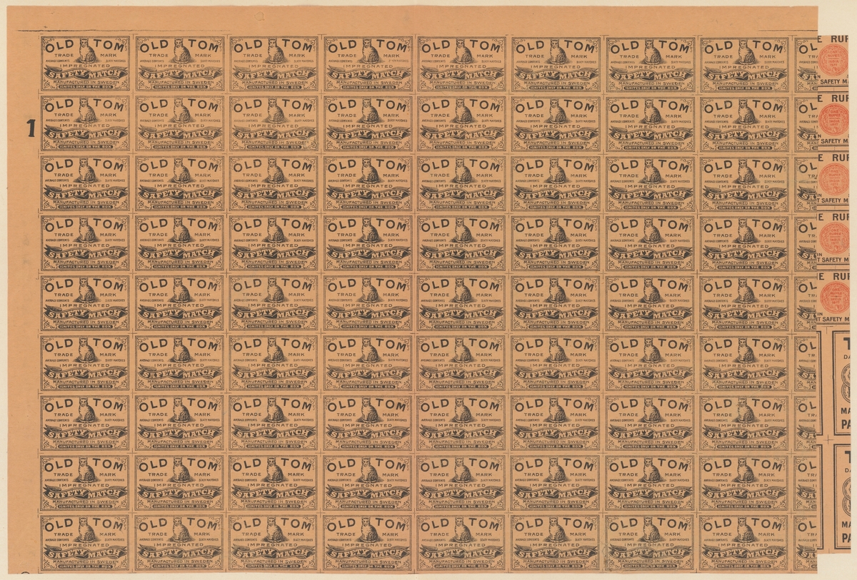 Etiketter för tändsticksaskar, från Svenskt Industri- och Handelsmuseum.