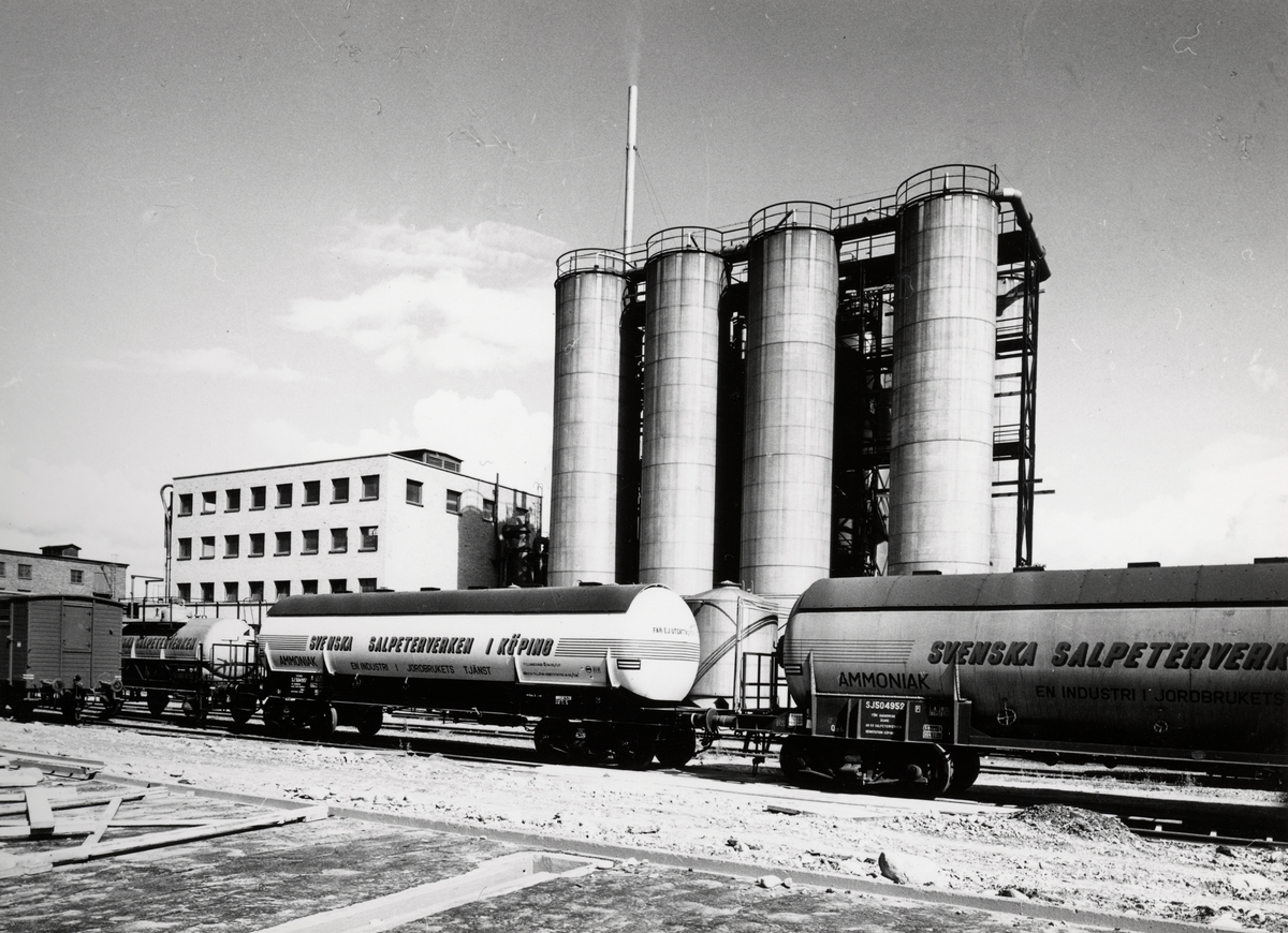 Tankbilar utanför Svenska Salpeterverken i Köping. Ur album för AB Svenska Salpeterverken.