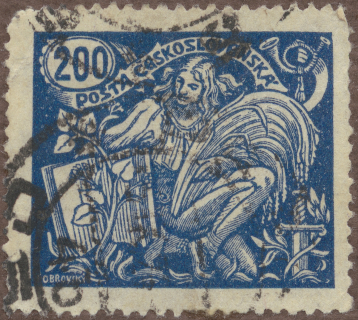 Frimärke från Tscheckoslovakiet, 1920. Motiv av Flicka med sädeskärve