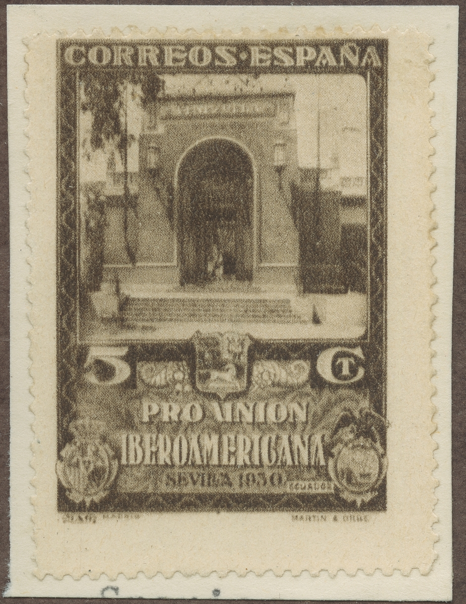 Frimärke från Spanien, 1930. Motiv av Ecuadors Paviljong -Utställningen i Sevilla 1930.