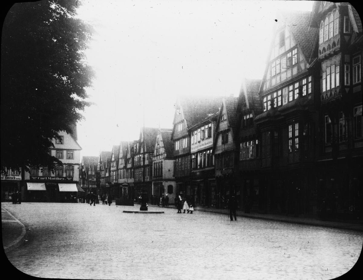 Skioptikonbild med motiv från Celle. Fotografiet är taget vid Stadtkirche, längs vägen Stechbahn mot Zöllnerstrasse.