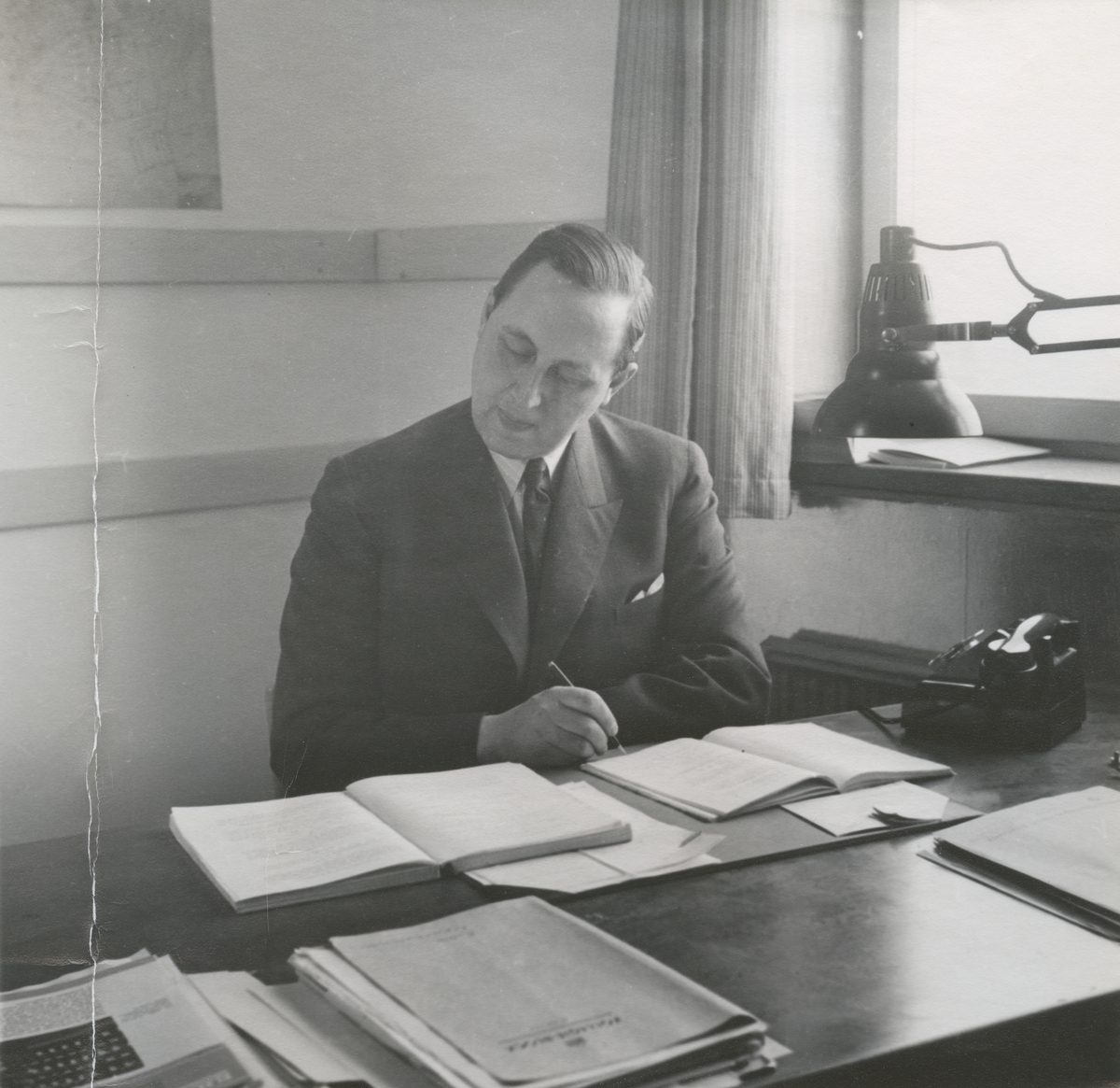 Fotografi av Professor Helmer Bäckström, på hans arbetsplats vid, institutionen för fotografi vid Kungliga Tekniska Högskolan.