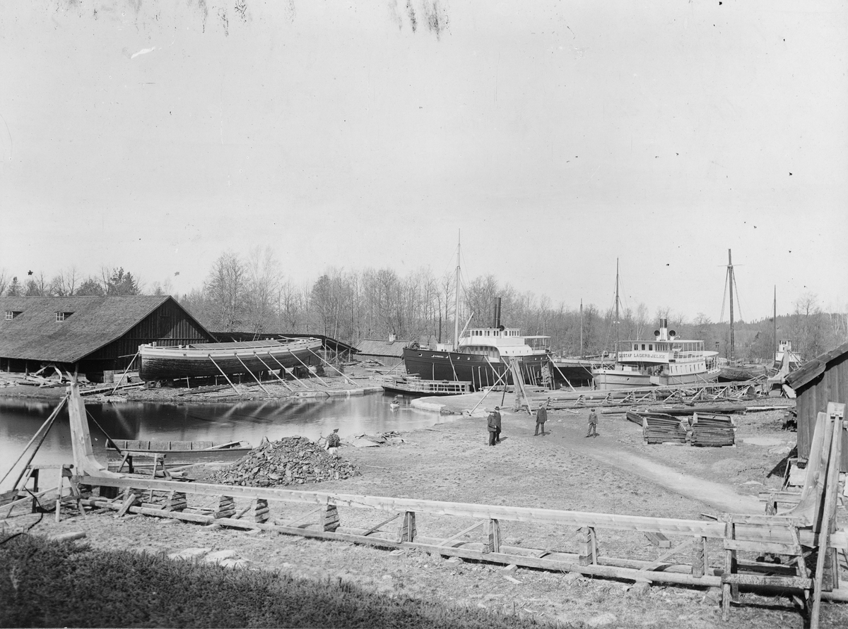 Hjälmare kanal, ångfartygen Arboga och Gustaf Lagerbjelke i varvet vid Hjälmare docka.