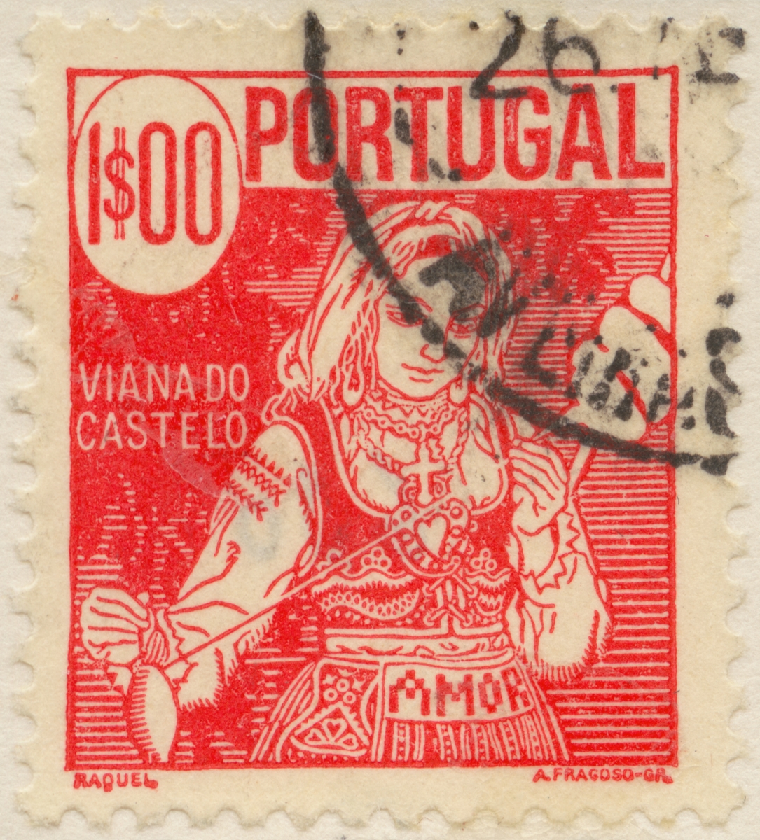 Frimärke från Portugal, 1941. Motiv av kvinnodräkt: - Viana do Castelo - Flickan med slända.