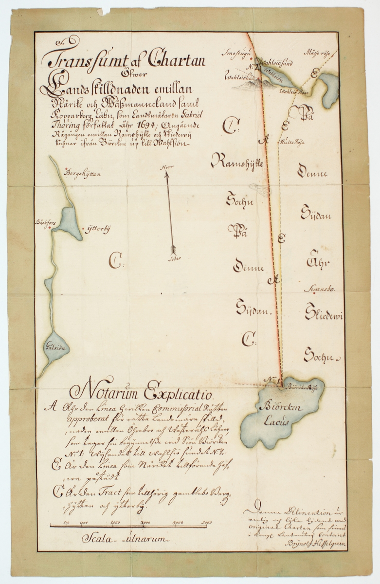 Gränskartor mellan Ramshytte och Skedvi socknar 1694.