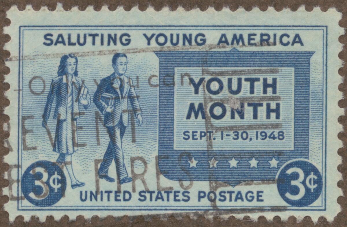 Frimärke från U.S.A., 1948. Motiv av Yngling och flicka Ungdomens månad: september 1948.