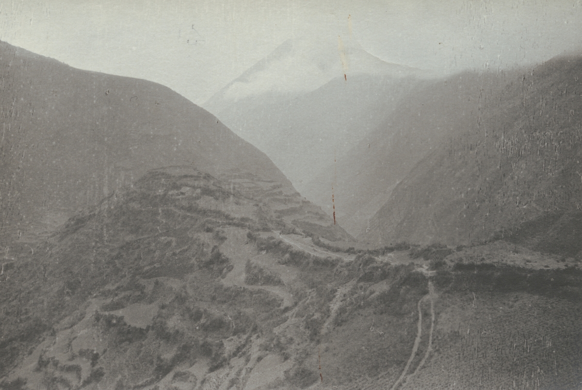 Fotografi från kuvert märkt med "Ernst Nordenskjöld". Vy över bergslandskap.