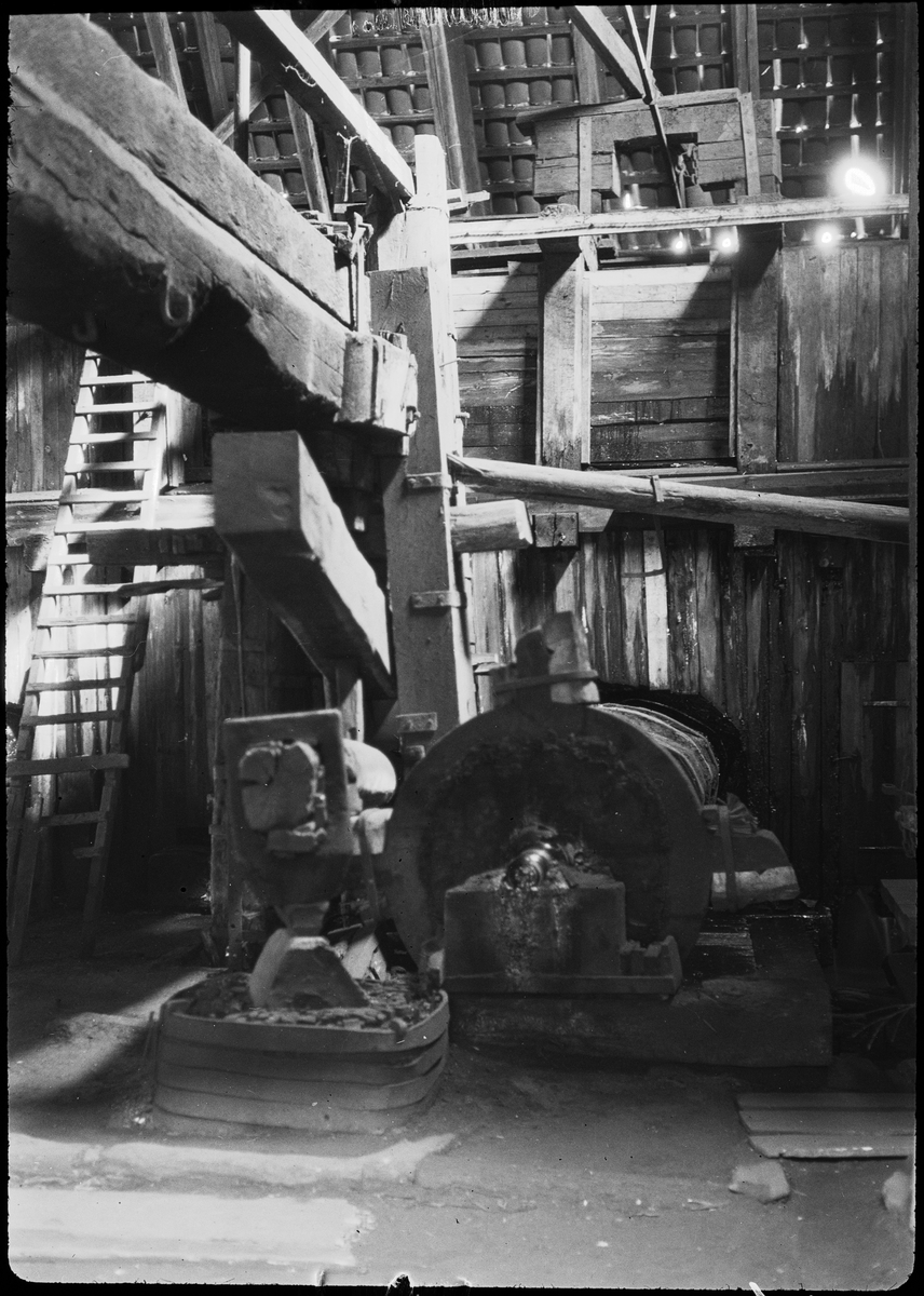 Nedre Hammaren. Stångjärnshammaren med stockarna, som fasthålla ställningsstolarnas övre ändar.