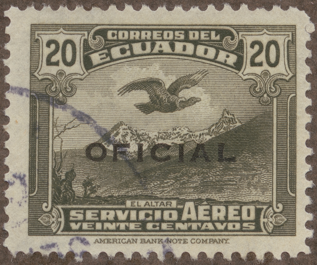 Frimärke från Ecuador, 1937. Motiv av Flygsymbol Flygande gam över El Altar
