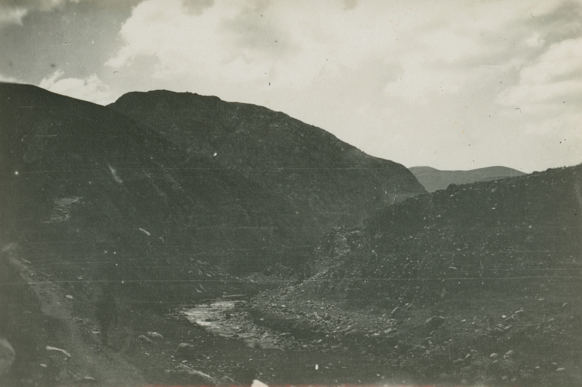 Fotografi från expedition till Peru 1920. Vy över bergslandskap och flod.