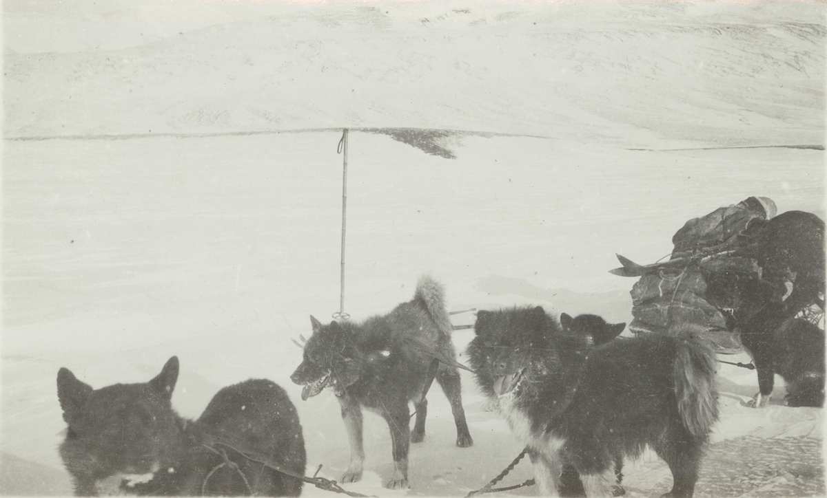 Fotografi från expedition till Spetsbergen. Motiv av hundspann i ett snölandskap.