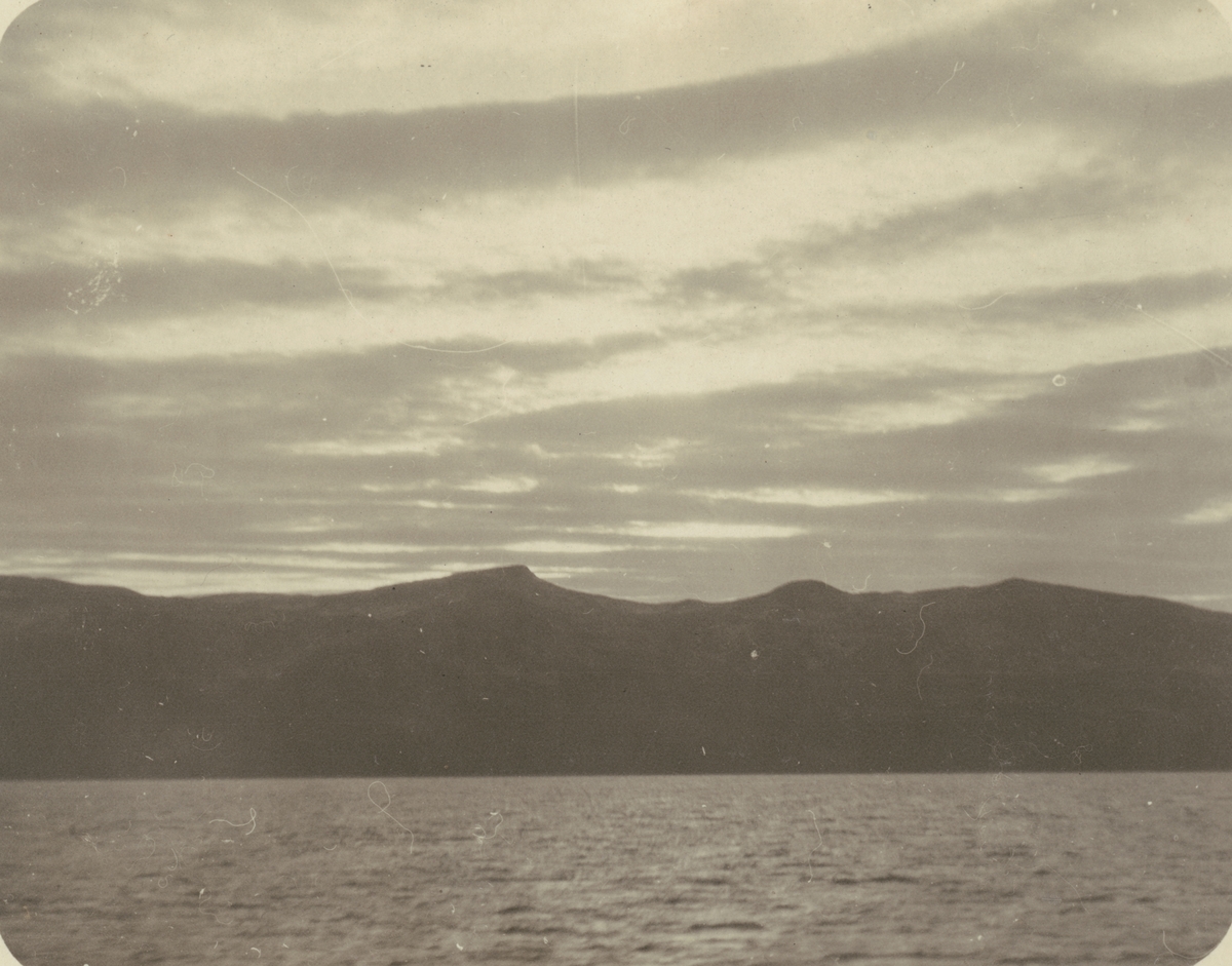 Fotografi från expedition till Spetsbergen 1920. Vy över hav, berg och himmel.