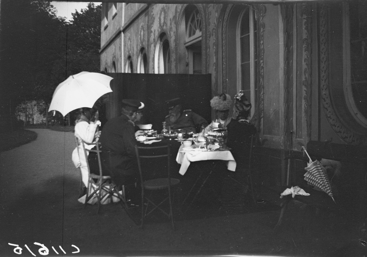 Drottning Victoria bilder. Sällskap vid matbord. Fredrik I av Baden i mitten.