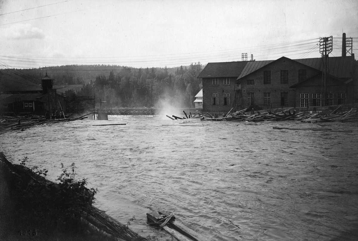 Munkfors Bruk i Värmland. Fallet uppifrån, Laxholmen till höger.