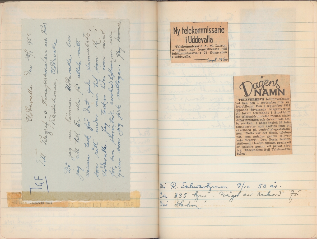 Dagbok "Under flydda år Uddevalla telestation 1920-1959", skriven av telefonisten Elsa Carlsson under åren 1920-1959 då hon arbetade på Uddevalla telestation. Dagboken ger en unik inblick i dåtidens samhälle och arbetsliv utifrån pressklipp, fotografier och dagboksanteckningar.