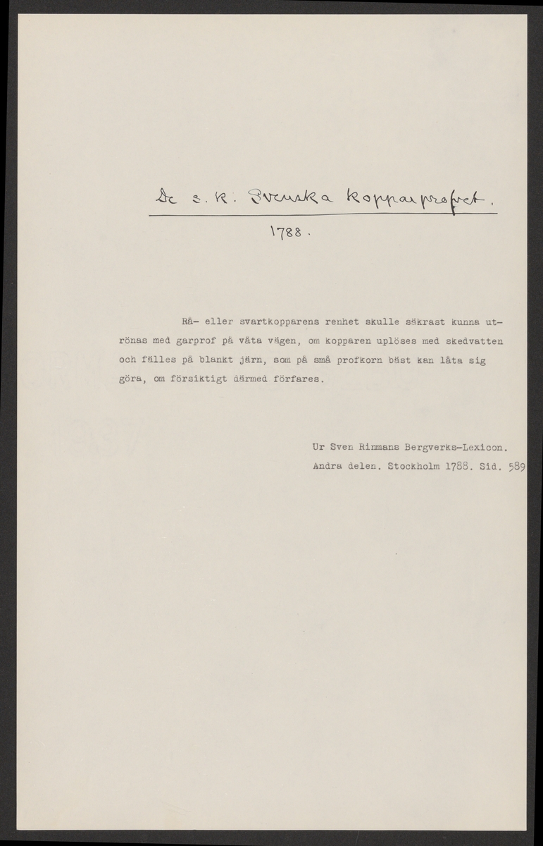 Titel: Diverse allmänt om bergshistoriskt material, A-J. Ämnesordnade handlingar av bergshistoriskt och bergstekniskt innehåll. Ur Carl Sahlins bergshistoriska samling.