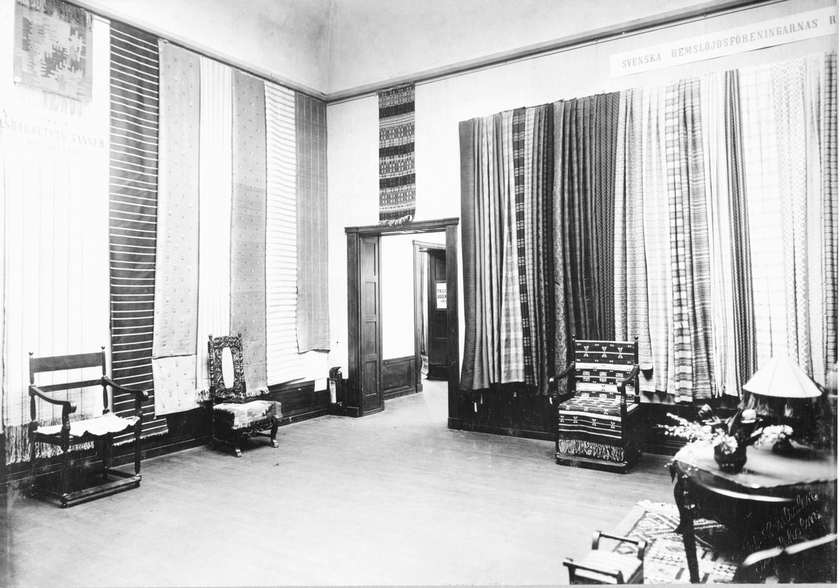 Textilier vid Svenska Hemslöjdsföreningarnas Riksförbunds del av utställningen.