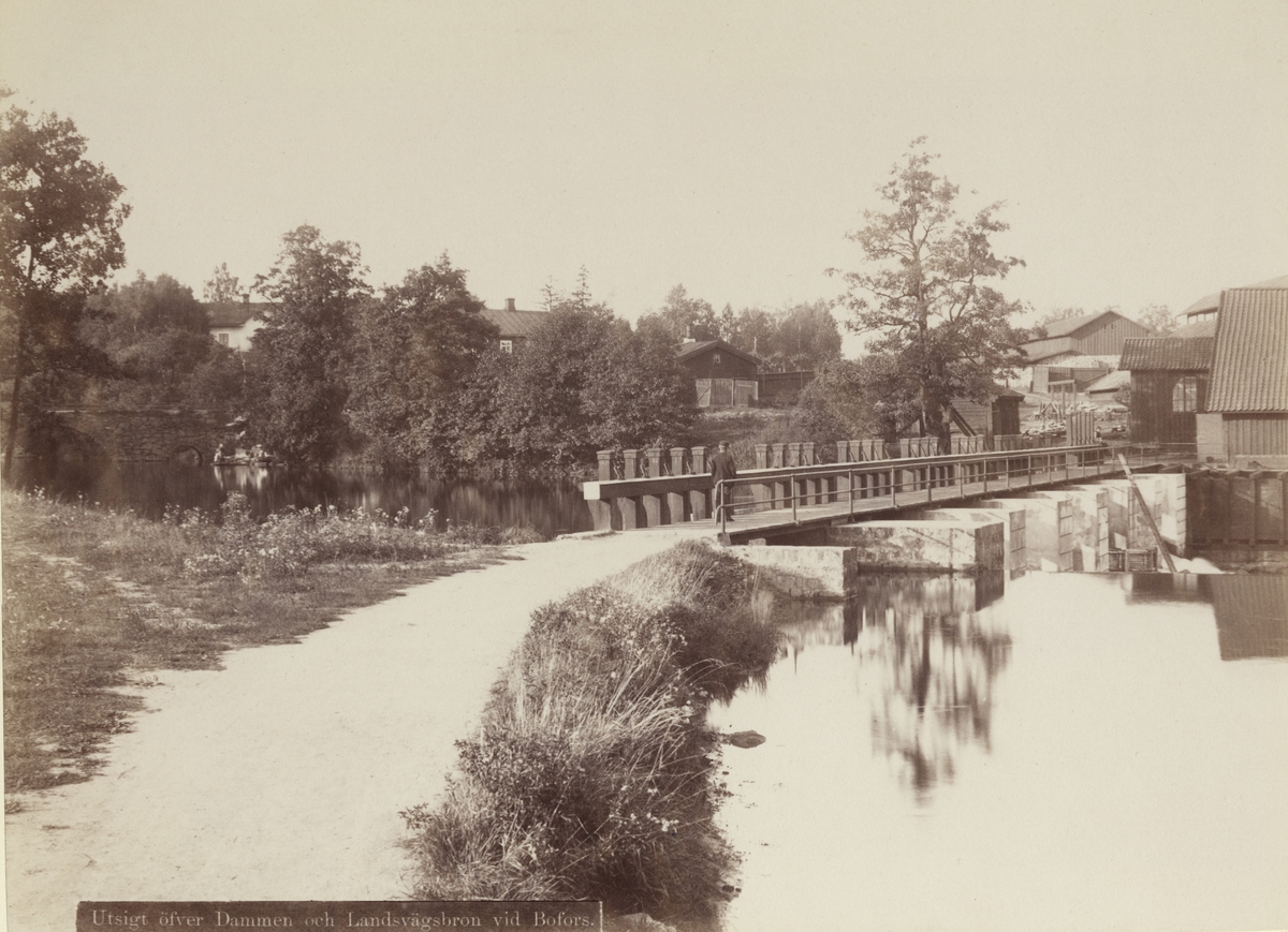 Bofors kraftstation. Utsikt över dammen och landsvägsbron vid Bofors.