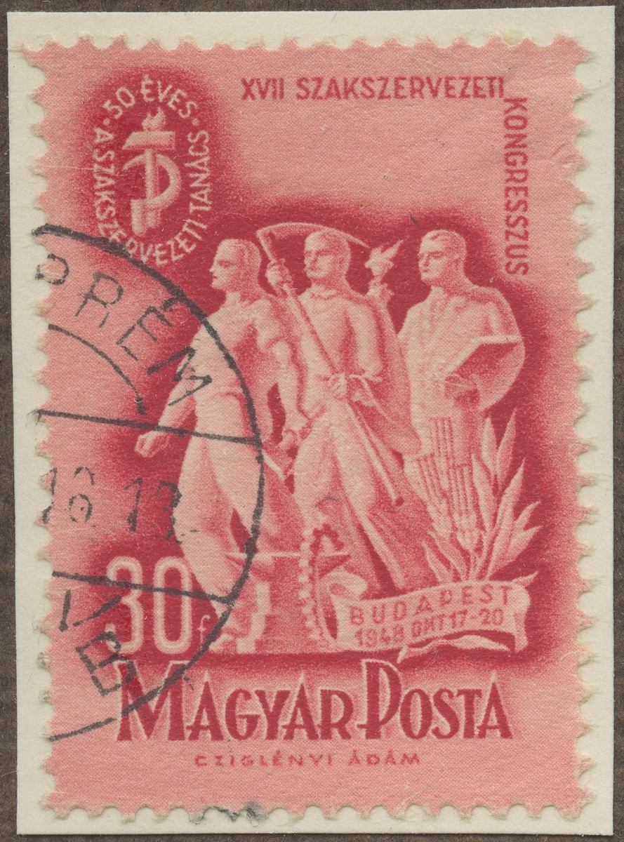 Frimärke från Ungern, 1948. Motiv av Arbetare för Syndikalist Kongress i Budapest 1948