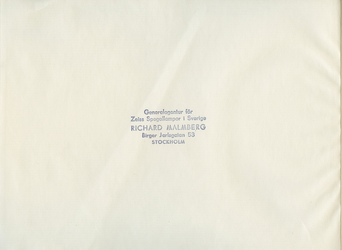 Försättsblad i boken "Zeiss Spiegellicht System Zeiss-Wiscott in der Architektur : eine Sammlung durchgeführter Beleuchtungsanlagen". Boken gavs ut av Berlin-Zehlendorf : Zeiss Ikon A.G., Goerzwerk, 1937.