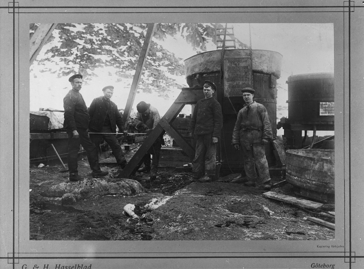Arbeten på vätgasapparatens montering. Andrées polarexpedition, 1897.