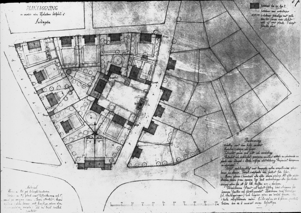 Planläggningsritning, bostadsområdet, Lidingö. "Situationsplan Blå Kant".